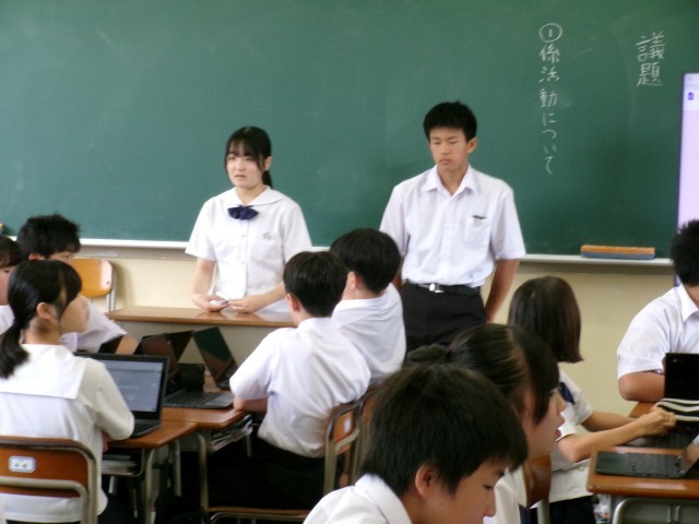 係活動について振り返る学級会の様子です。学級代表が司会をし、1人ずつ係活動の課題を考えました。次は、係ごとに集まり、解決策を考えていました。よりよい係活動になるよう、考え、実戦していきましょう。