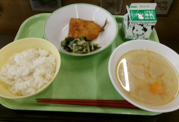 6月10日(火)今日の給食 公開日 2025/06/10 更新日 2025/06/10 今日の給食 あじは、フライでも焼いても刺身でも美味しい魚です。今日は、あじフライ、さくっとした衣で美味しかったです。<今日の献立>ごはん牛乳あじフライ海藻サラダみそ汁