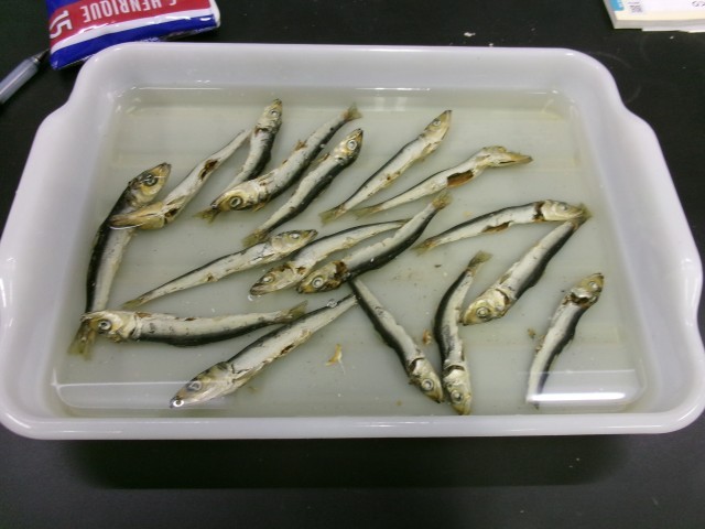 理科の授業の様子です。いわしを使って、身体のつくりの学習です。いわしをしばらく水につけて柔らかくして、観察したそうです。立派ないわしで、いい出汁になりそう・・と思ってしまいました。