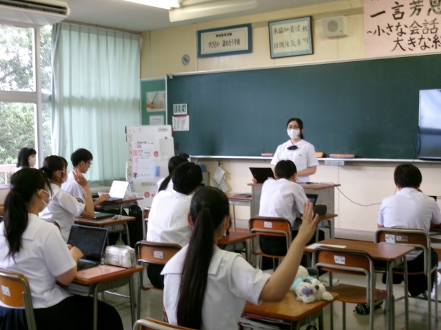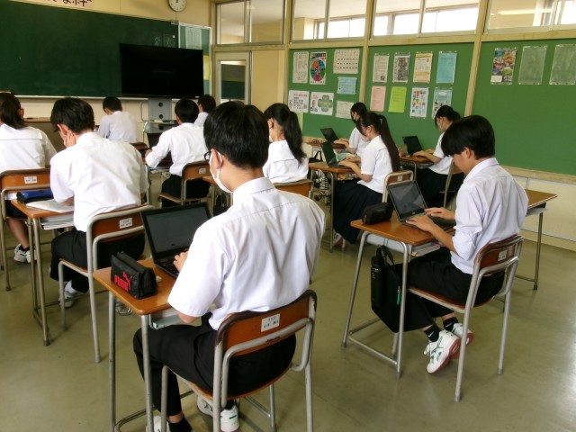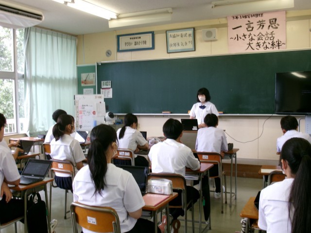 国語の授業の様子です。スピーチの発表をしていました。発表後は、相互評価を行っていました。話す態度も聞く態度も立派でした。