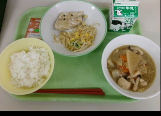根菜たっぷりの煮物には、人参、大根、ごぼう等の根菜に鶏肉、しめじ等々多くの食材が使われていました。給食の献立は栄養価だけでなく食材もよく考えてあり、感謝しかありません。中学生よりもずいぶん年齢が高い者にとっては。少しカロリーオーバーかもしれませんが、今日もおいしくいただきました。