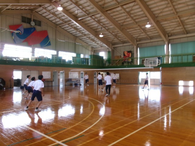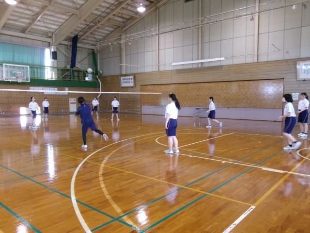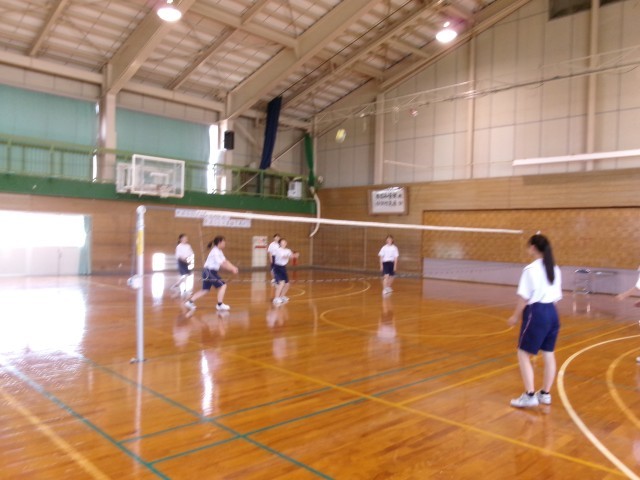 保健体育科の授業の様子です。3年生ともなると、トスからスパイク、ブロックといった攻撃や守備ができた場面もありました。バレーボールの特性に触れ楽しんでいます。