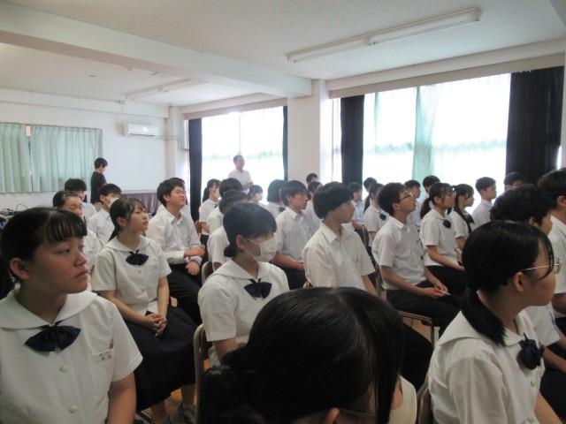 本日6限目に富山県立中央農業高等学校の室井校長先生に農業(農学)についての授業をして頂きました。最先端の農業技術や私たちが毎日頂いている「命」についての話はとても興味深く、現在行っている総合的な学習のテーマであるSDGsとも大きく関わっていることを学びました。モンキードッグやカーボンニュートラル等新しい知識を得ることができ、大変有意義な時間でした。室井校長先生、ありがとうございました。
