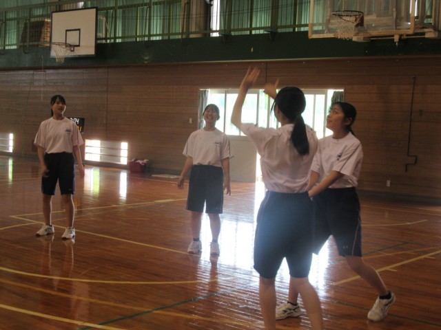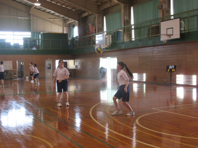 保健体育のバレーボールの授業です。みんなで声を掛け合って、ボールを繋ごうと頑張っています!