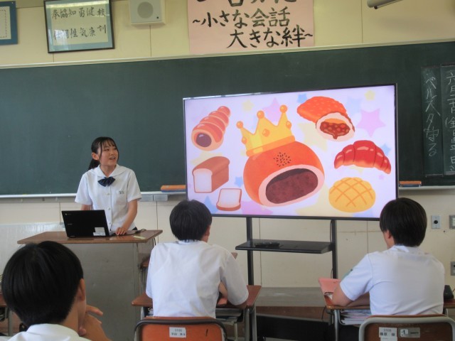 今日は1ヶ月前から準備してきた英語のスピーチの本番でした。自分が興味をもっている「Japanese pop culture」について調べてきたことをスライドにしてみんなの前でスピーチをしました。1年生から継続して行っているスピーチ活動はどんどんレベルが高くなり、今回は聞いているみんなとやり取りをしながらスピーチを進めているライブ感がありました。2学期のスピーチも楽しみです!