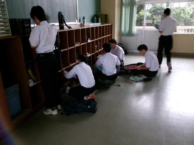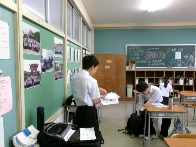 朝の教室の様子です。テストに向けて、勉強をする生徒が多かったです。また、荷物整理をしている生徒もいました。
