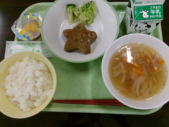 朝、七夕飾りの記事を出した今日が七夕献立の日でした!ハンバーグもゼリーも七夕仕様の星形です。スープは天の川をイメージして、具が細長めでコーンが星かな?(合ってますかね?)そういえば、子供が幼稚園に通っていたとき、「たこ焼きをつくる人になりたい」って書いてある我が子の短冊を見付け、思わず笑ったことを思い出しながら、今日も美味しくいただきました。
