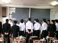 3年生 1・2組合同音楽で卒業式の練習をしていました。おっと、あぶない・・・涙腺...