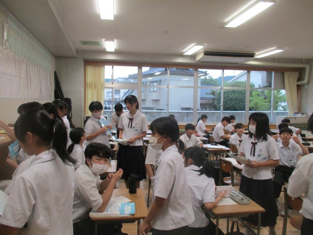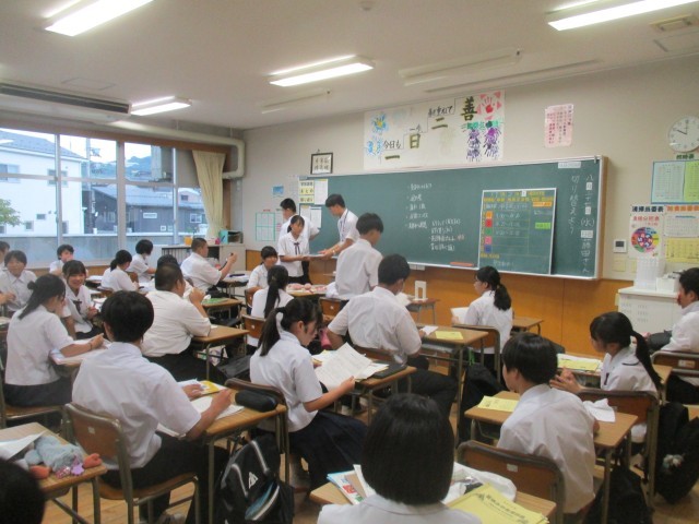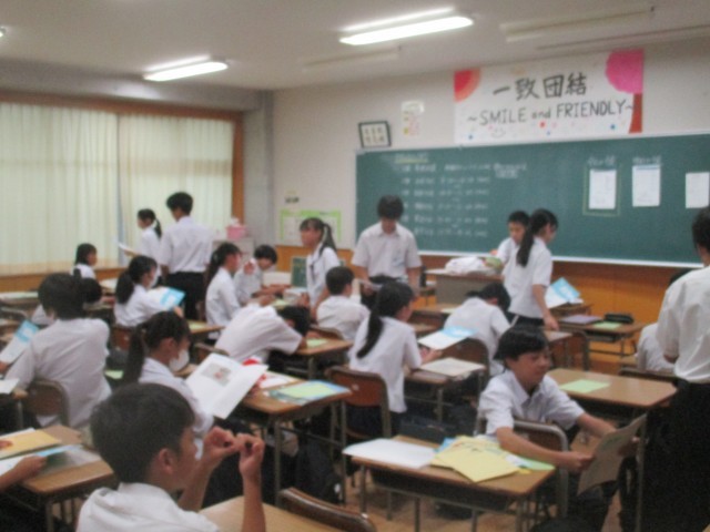 今日から2学期が始まりました。各クラスでは提出物を集めています。上から1組、2組、3組、4組、5組です。