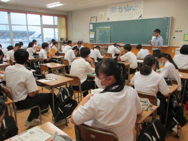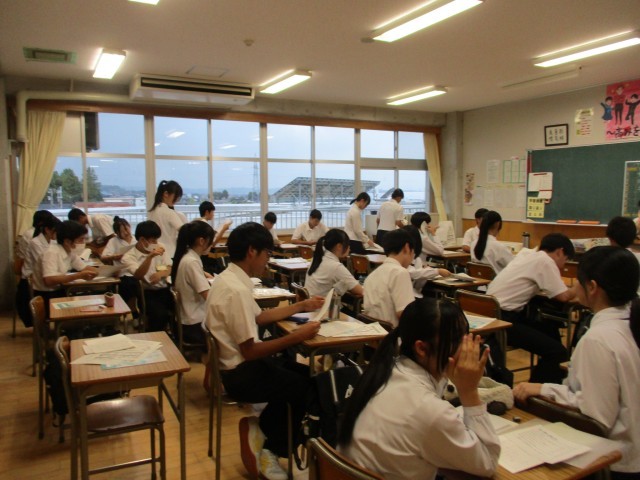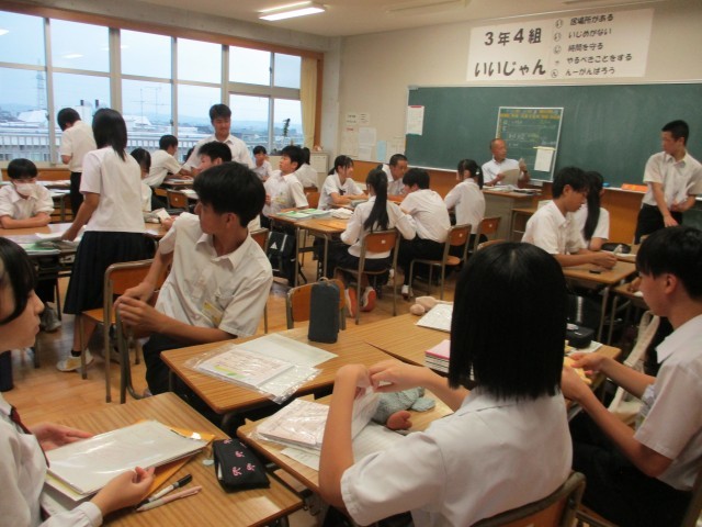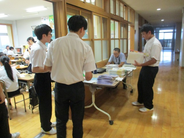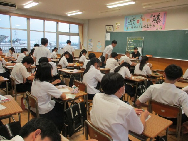 学活では、今学期の目標を書いたり、夏休みの課題を提出したりしました。