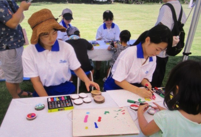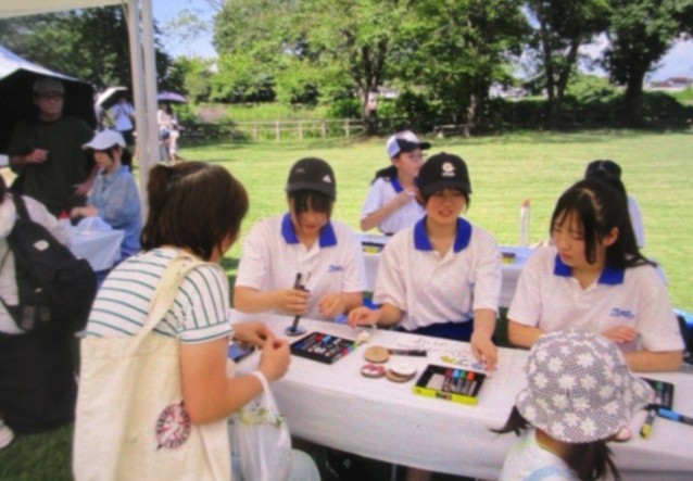 富山市ファミリーパークで行われた『悠久の森2025』に、美術部も参加していました。クラフト体験コーナーでは、子供たちが作りやすいように声をかけていました。