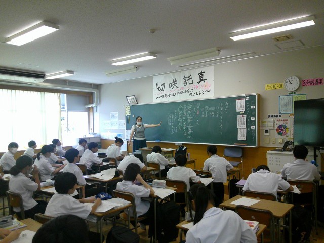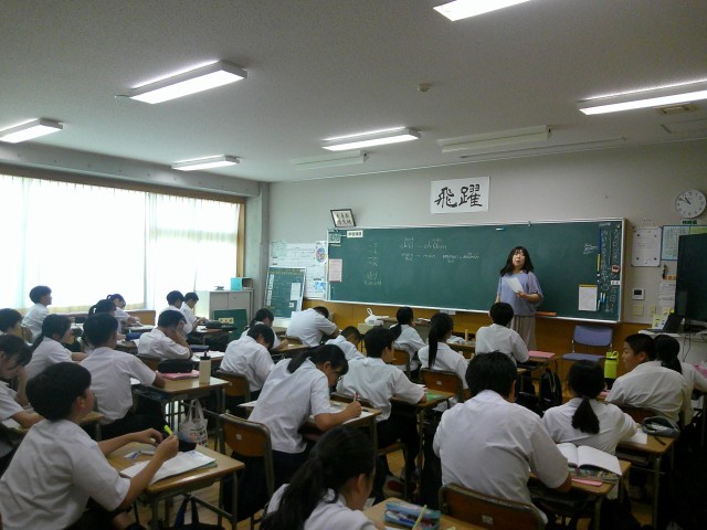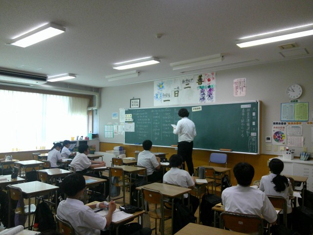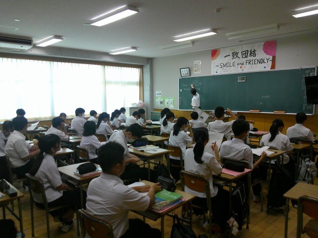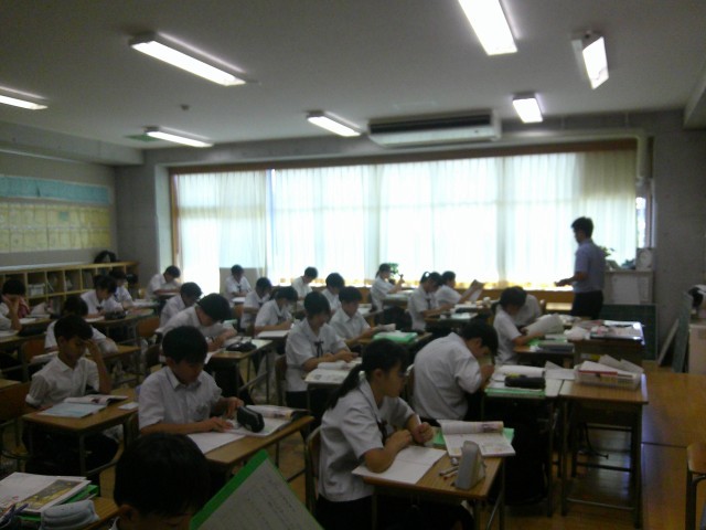昨日より少し涼しくなりましたが、まだまだ暑い日が続いています。水分をしっかりとって、体調に気をつけて過ごしましょう。上から1組 社会、2組 数学、3組 国語、4組 英語、5組 英語です。