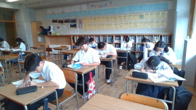初日は英語と数学を行いました。参加した生徒たちは時折疑問点やわからないところを質問しながら熱心に自分の課題に取り組んでいました。