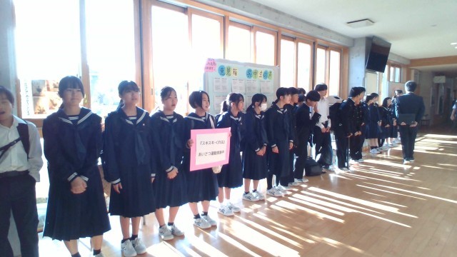 昨日は1年2組、今日は1年3組が挨拶運動をしてくれました。