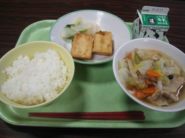 今日の給食いつもより大盛りです。お腹いっぱいです。