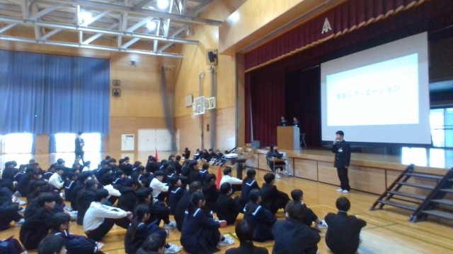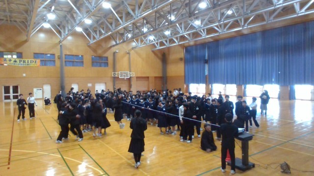 本日3限、保健体育委員が準備・運営をしてくれた学年レクリエーションを開催しました。今回のレクリエーションは「○✕クイズ」と「じゃんけん列車」です。冷えた体育館でしたが、生徒たち熱く盛り上がっていました!