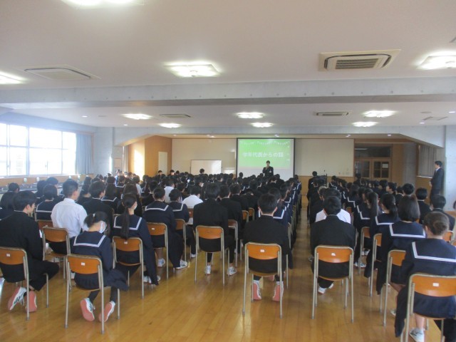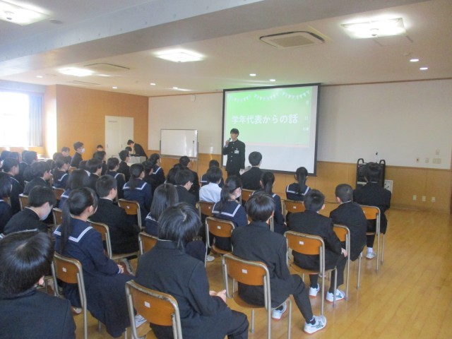 学年生徒会から今学期のクラスの振り返りを発表しました。