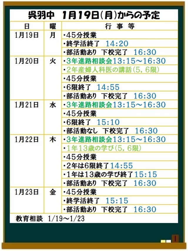 1月19日(月)からの予定
