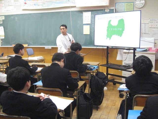 生徒は熱心に話を聴き、将来、富山で薬剤師になりたいと感じる生徒もいたようです。