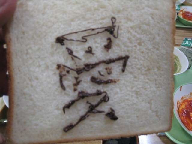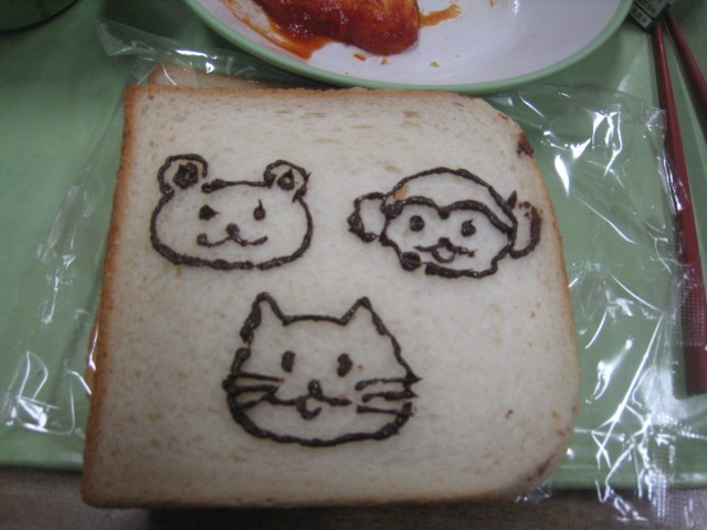 今日の給食では、食パンに“チョコクリーム”がついていました。大人気チョコクリームをつかって思い思いの作品が…。