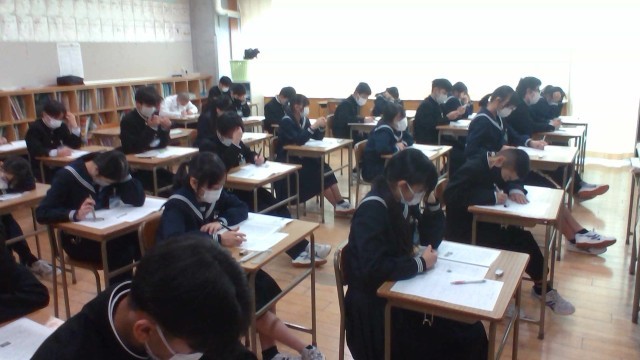 本日の私立高校一般入試に合わせて、1~5限目まで実力テストを行いました。2年後の今日は、各入試会場に出向き入試問題に挑戦しています。今から意識して、学習を積み上げていってほしいと思います。