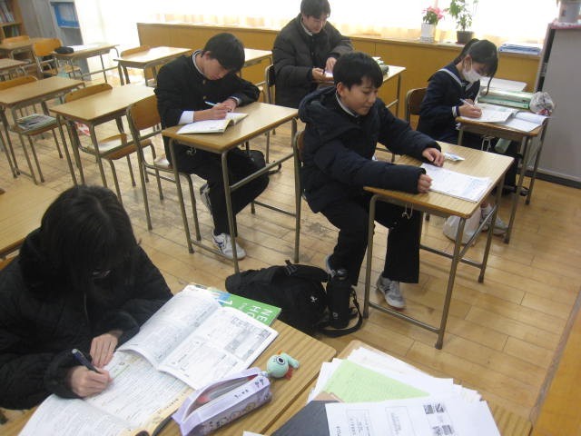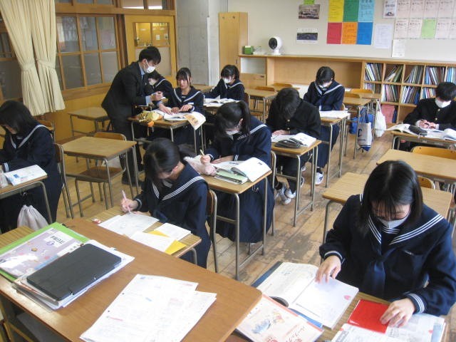 本日の1年生の教室を覗くと、明日からの試験を前に、一人ひとりが自分の課題に向き合い、集中して学習に取り組む姿が見られました。