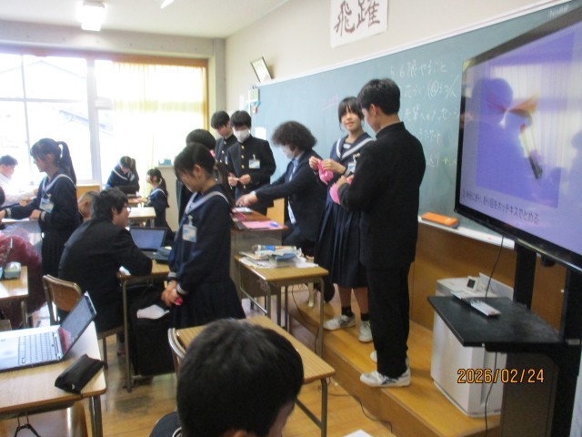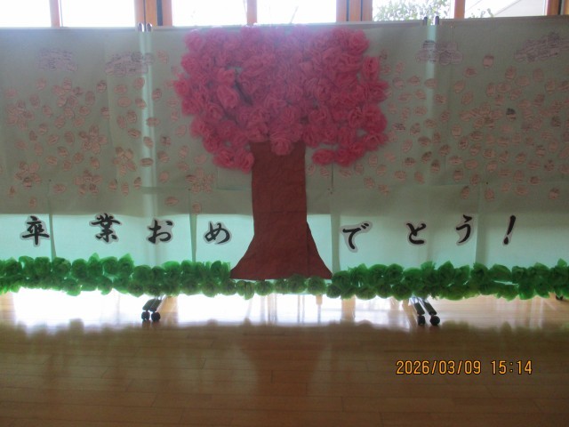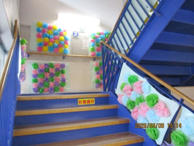 生徒会主催で卒業祝いの掲示物を作成しました。各クラスでメッセージカードを書いたりお花紙でお花を作成したりしました。それをもとに桜や廊下の掲示物を作成しました。3年生のみなさん、ご卒業おめでとうございます。ぜひ後輩たちからのメッセージ、読んでくださいね。