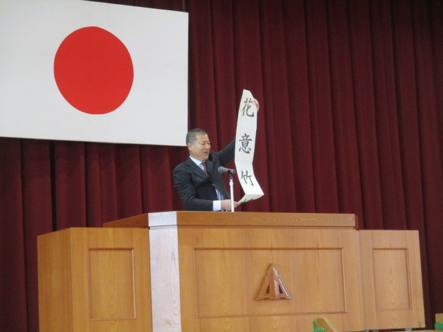 池淵校長先生は式辞の中で「花意竹情」という古詩を示されました。花のような心、竹のような心で、柔軟に人と関わりをもつことの大切さをお話しされました。