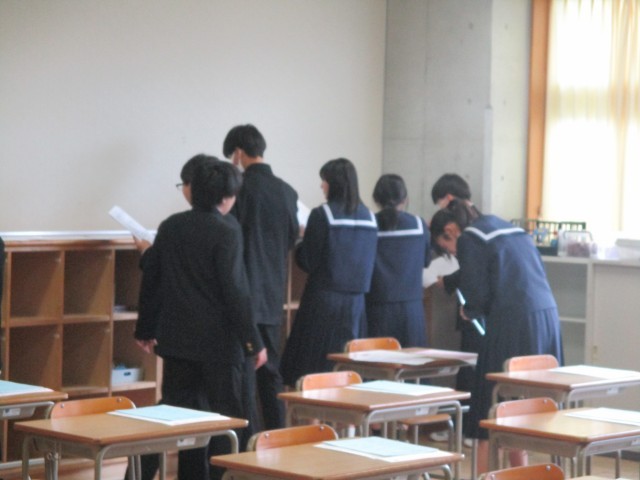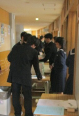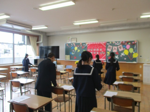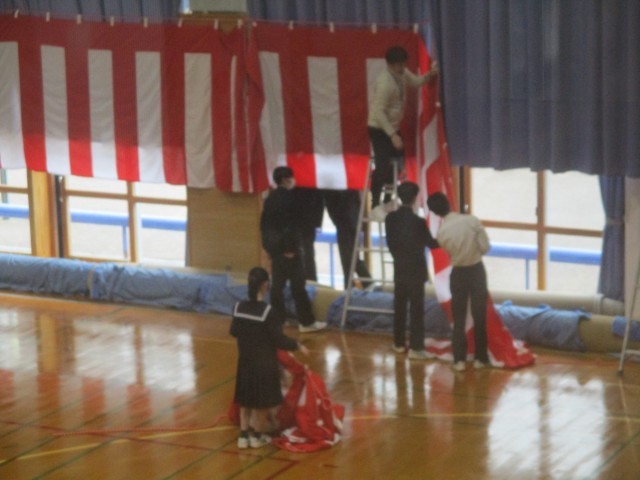 2年生は、新入生を迎える教室環境や教科書等の教科書を整えました。3年生は、体育館の準備をしました。いすを並べたり、紅白幕をつけたり、ゴールを片付けたりと協力しながら、それぞれの役割を責任もって果たしました。