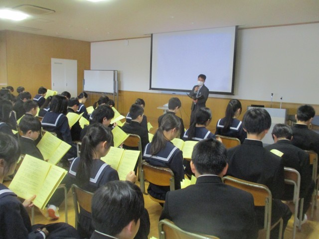 本日、初めての学年集会を行いました。学年スタッフから、学校生活を送るうえで大切にしてほしいことや、これからの成長へ期待をこめたメッセージを生徒たちに伝えました。