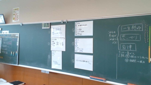 昨日に続き、各クラスでは学級目標決定に向けて話合いを進めました。まとまってきた学級目標をより自分ごとに落とし込むため、「自分ができること」について考えているクラスもありました。掲げて終わりではない目標、実現に向けてクラス一丸となって行動していってほしいと思います。