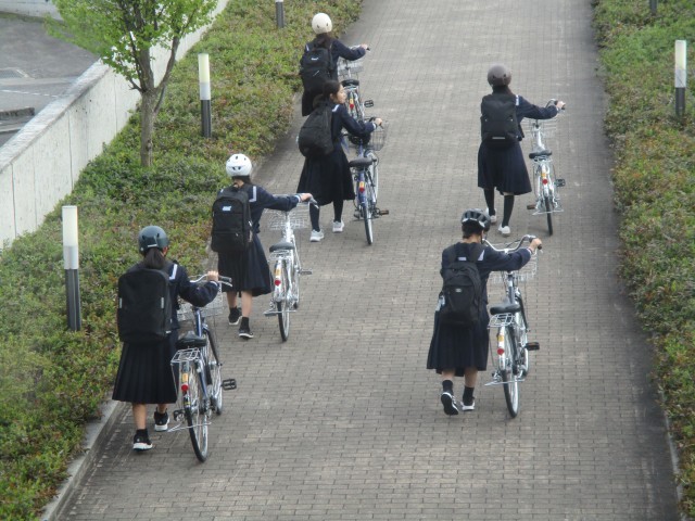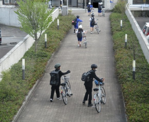 学校敷地内は、自転車に乗らず押して通行になります。坂道を頑張って押していました。では、また明日!