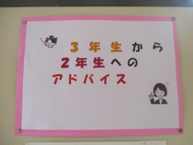 先輩たちからのアドバイスが掲示してあります。具体的なアドバイスを生かして、「呉中プライド」につなげてほしいと思います。