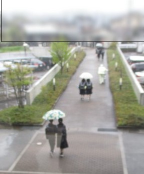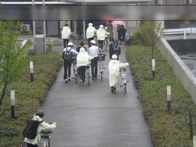 天気予報のとおり、雨が降ってきました。傘を持っていない生徒と一つの傘に入って下校する様子がありました。