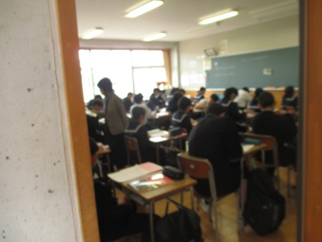 社会では、机より大きい富山市の地図が配られたところでした。さっそく、自分の家はどこか探している人もいたようです。英語の授業の教室からは、発音する大きな声が聞こえました。