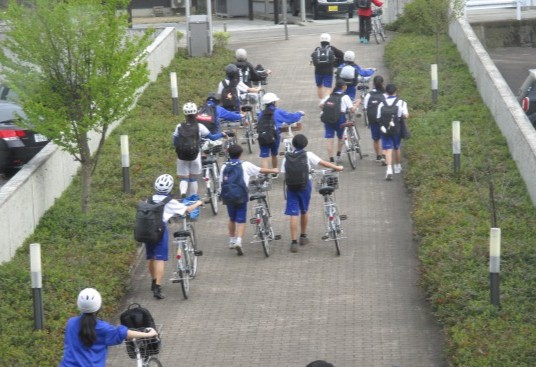 部活動を終了し、下校する生徒たちの様子です。終了時刻を守って活動できています。