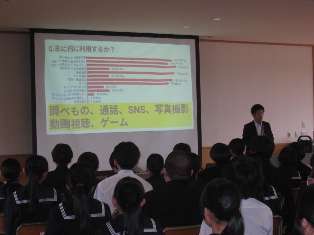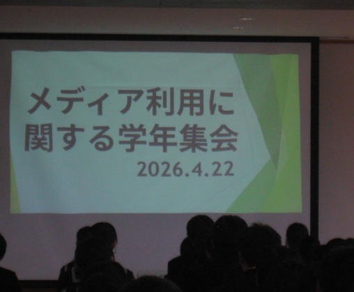 本日6限、2学年ではメディア利用に関する学年集会を行いました。スマホをはじめとしたメディア利用の時間が長くなっている状況を共有し、「依存症」に関する情報提供と注意喚起をしました。今後は各自の意思と判断で適切に利用していく必要があります。