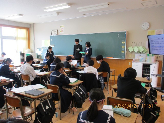 本日行われた学級討議の様子です。委員の説明を真剣に聞き、討議していました。