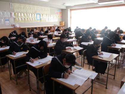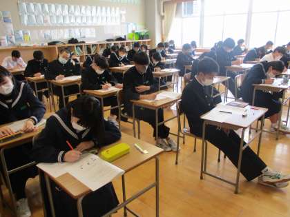 昨日から2学期末考査を実施しています。日頃の学習の成果を発揮すべくみんな集中して頑張っています。