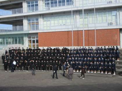 全クラスのメンバーが交流広場に出て、さわやかな晩秋の空の下で卒業アルバム用の写真を撮影しました。