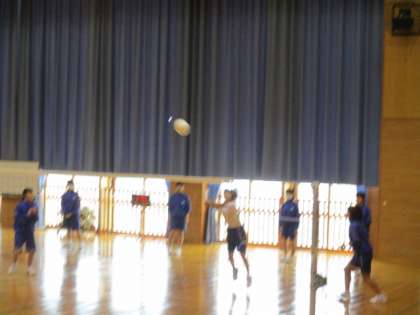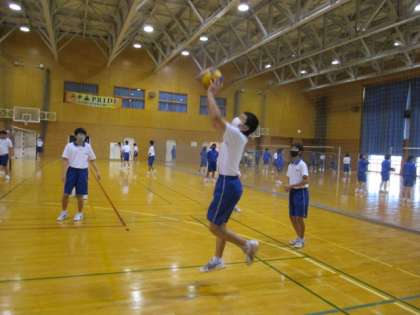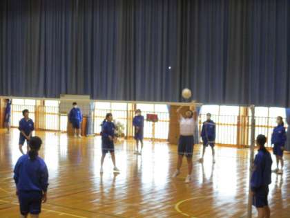 保健体育では、男女ともバレーボールを行っています。今日はゲーム形式で今までの練習の成果を試していました。