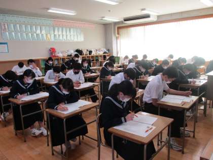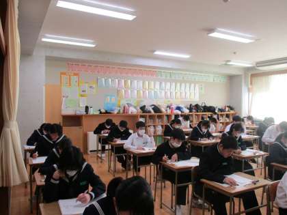 今日から、3年生の学力調査がはじまりました。休み時間も、真剣な顔で次の科目の学習をしていました。明日もしっかりと体調を整えて頑張って欲しいと思います。これからもたくさんのテストもありますが、しっかりと見直しをして、確かな学力を身につけて欲しいと思います。