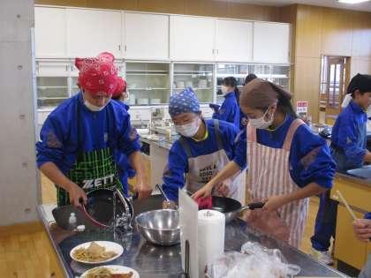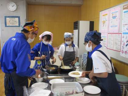 昨日に続いての実習です。各班で力を合わせて、いきいきと活動しました。上手に分担して、配膳と洗い物を並行して行う班もありました。普段の教室での授業とは違う一面をお互いに見せ合う時間なっています。