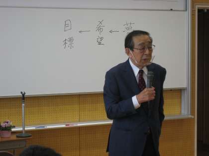 音楽室会場で、元フジテレビアナウンサーの露木茂先生は、「夢をもつことで、それが希望になり、目標となって、生き方を支えてくれる。思いもしない出会いが自分を変えてくれる。」とお話しいただきました。