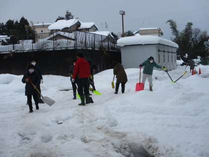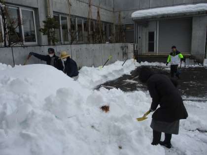 外では今日も除雪作業を進めました。避難経路、給食物資搬入口等を中心に、生徒のみなさんが登校したときに困らないようにがんばりました。