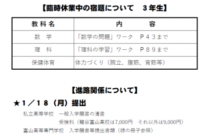 1月13日(水) 自宅で待機している3学年の皆さんへ