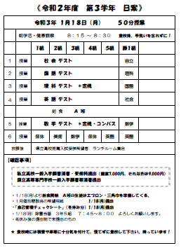 1月15日(金)3学年:1月18日(月)の予定