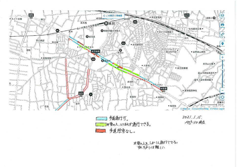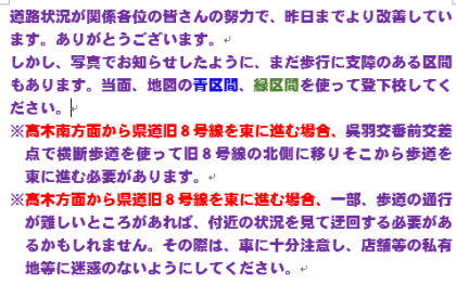 18日(月)の朝までに状況が変わっている可能性があります。気をつけて登下校してください。