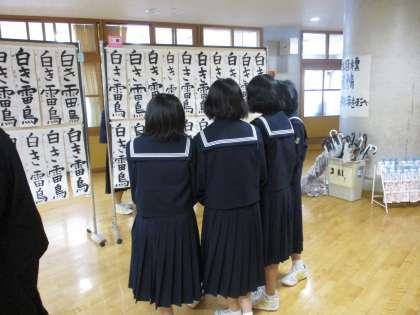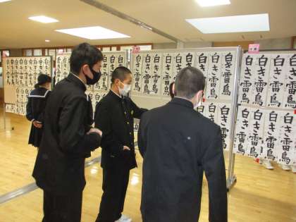 始業式の日に行った書き初め大会の作品を、臨時休業期間を挟んで学年フロアに展示しています。