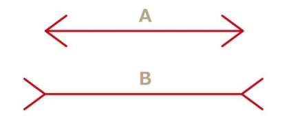 左:スクリーン映った画像を見て、どちらが長いか考えています。